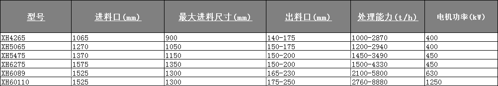 XH 旋回式破碎機(jī)擁有精細(xì)的破碎腔設(shè)計(jì),確 保更強(qiáng)的生產(chǎn)能力、更大的進(jìn)料粒度及更長(zhǎng)的襯板 壽命;大傾角和長(zhǎng)破碎面設(shè)計(jì),配合優(yōu)化設(shè)計(jì)的沖 程和轉(zhuǎn)速,使破碎機(jī)具有超強(qiáng)的破碎能力,適用于 各種粗碎破碎作業(yè)需求;通過簡(jiǎn)單更換偏心套,就 可以改變破碎機(jī)的處理能力,以滿足不同的破碎工 藝需求。
